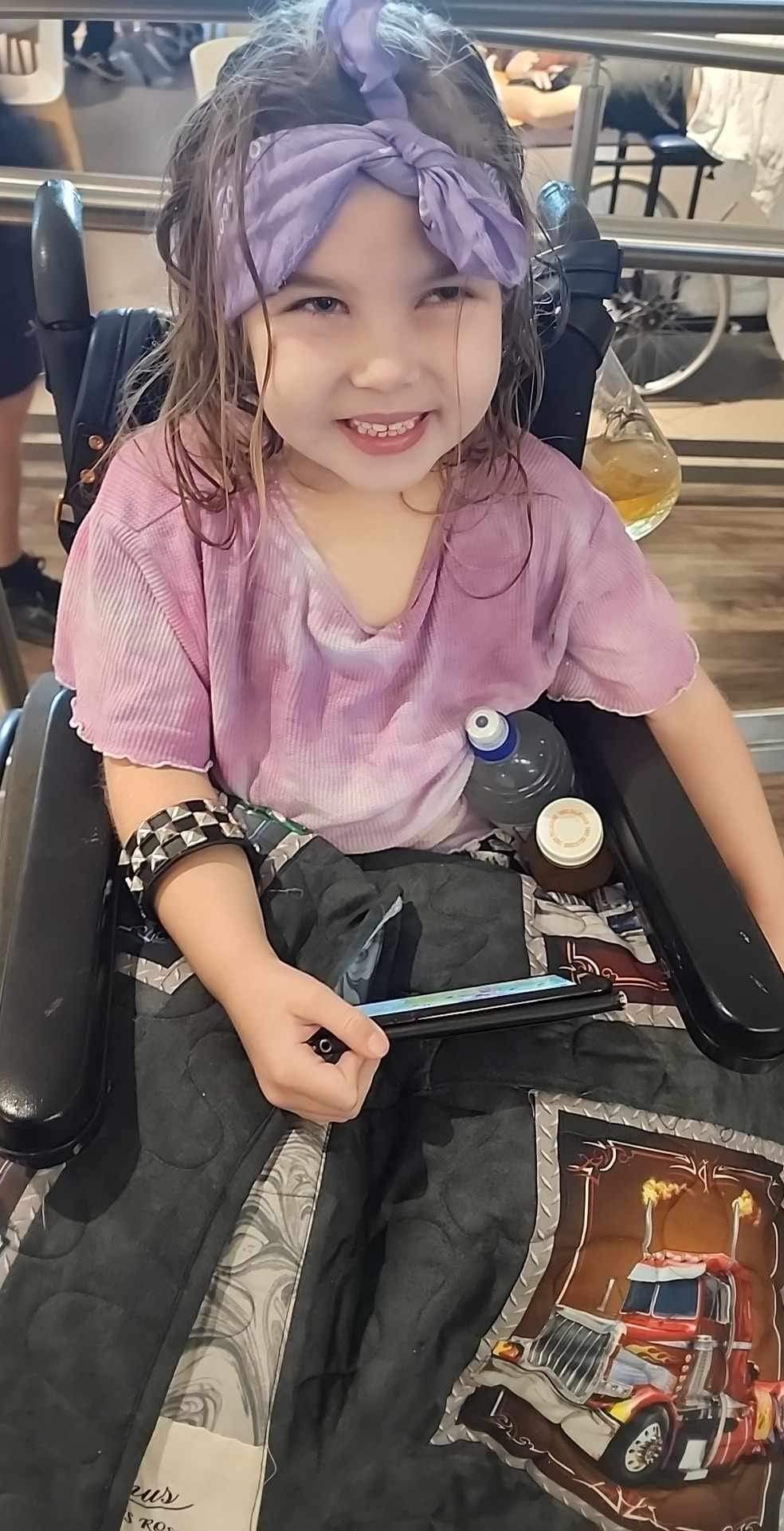 Audrey's medical challenges are numerous and include a severe progressive debilitating neurological disorder, permanent acquired brain injury, severe refractory epilepsy, autism, ADHD, cognitive and intellectual impairment, speech impairment, and gross motor impairment akin to a hemiplegic cerebral palsy (GMFCS III).